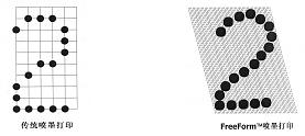 传统喷墨打印和 FreeFormTM 喷墨打印实样比较如下: